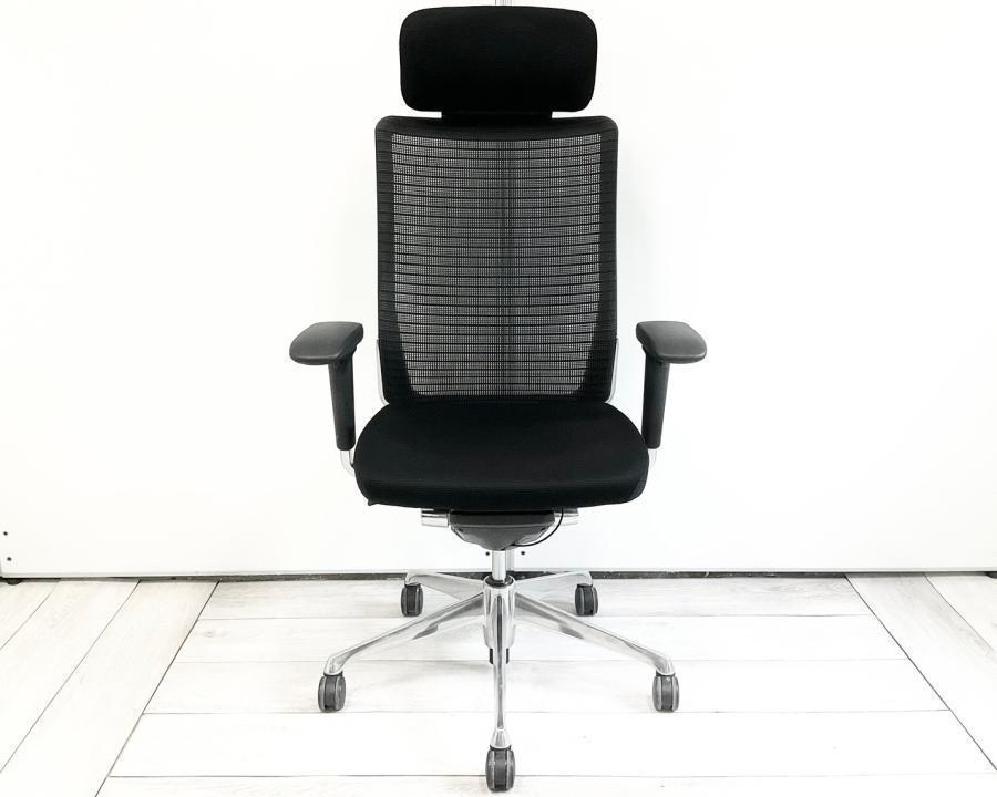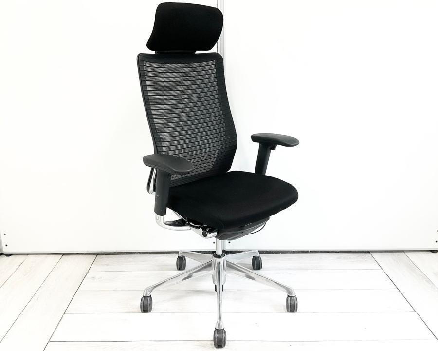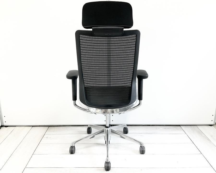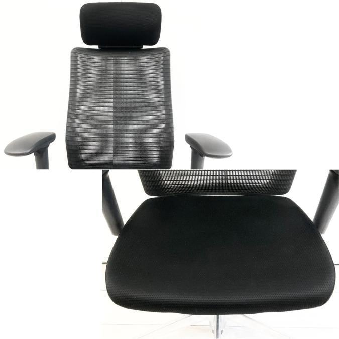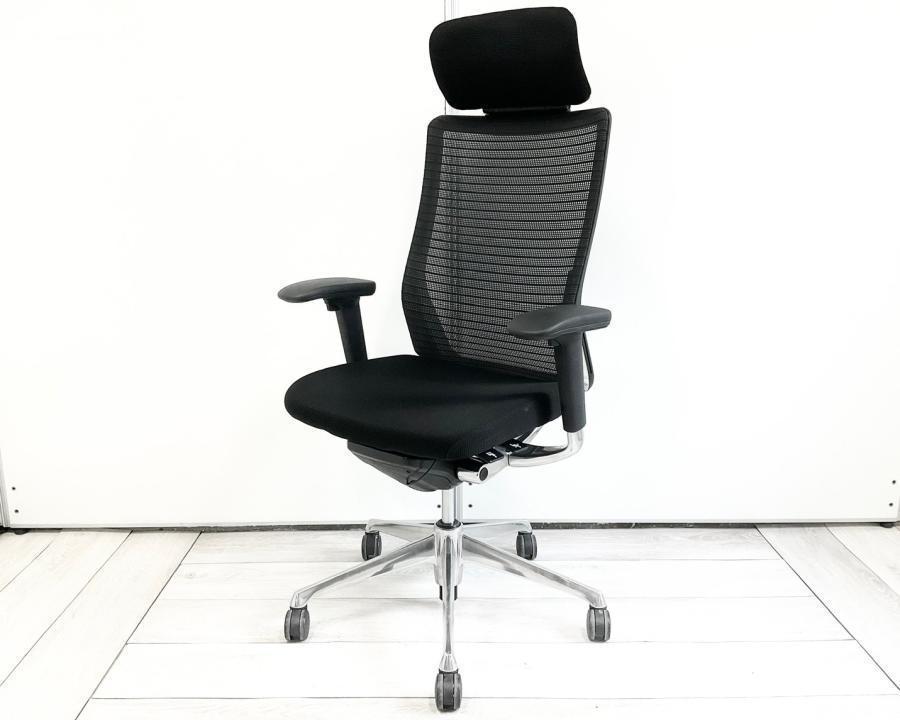 【1脚限定】【クレジット決済優先】広い背面・座面が人気!オカムラ製の高級ヘッドレスト付きチェア! ■オカムラ/コーラルメッシュ/ブラック 可動肘付 オフィスバスターズ心斎橋店- 大阪心斎橋店