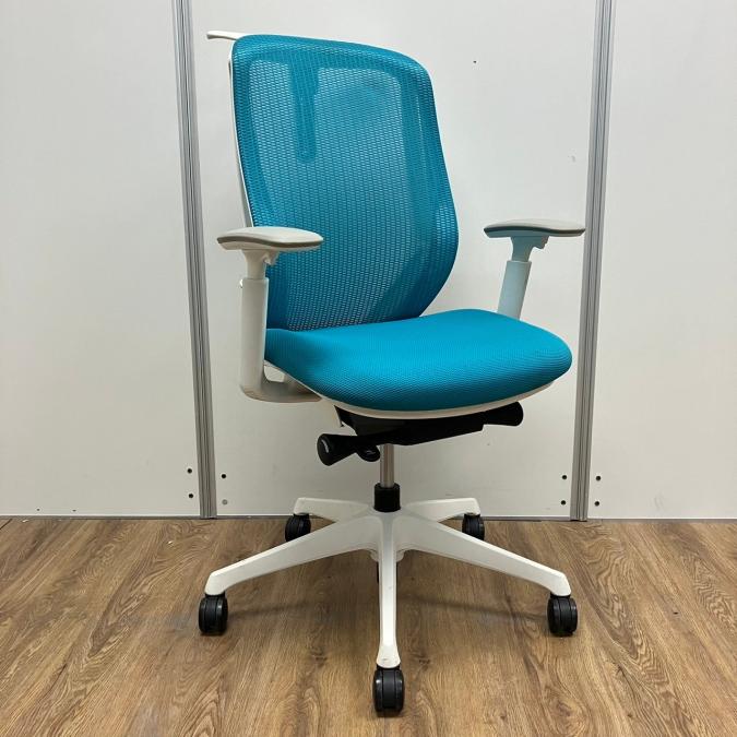 【新品ヘッドレスト交換済み】オカムラ/シルフィー/ブルー/可動肘