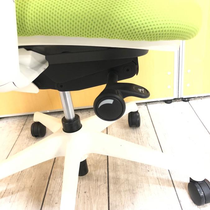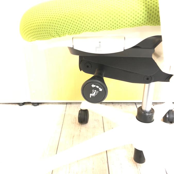 - 座面右下のダイヤル操作で、リクライニングの強弱調整が行えます。これまでのダイヤル式よりも、少ない回転数で、最弱?最強の調整が可能です。