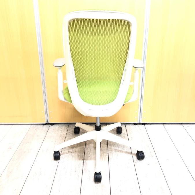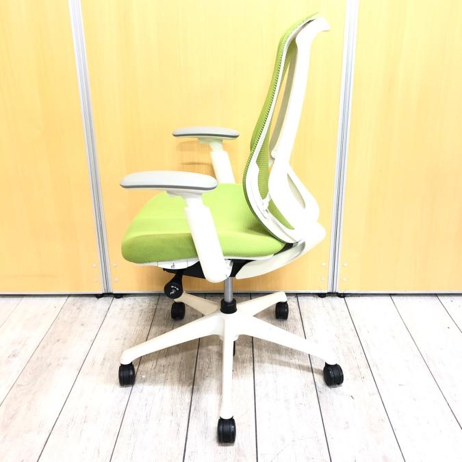 【在庫入替セール品】【人気のシルフィチェアヘッドレスト付きが1脚限定入荷!】オカムラ シルフィ ライムグリーン エクストラハイバック ホワイトフレーム デザインアーム(固定肘) 前傾チルト機能付き