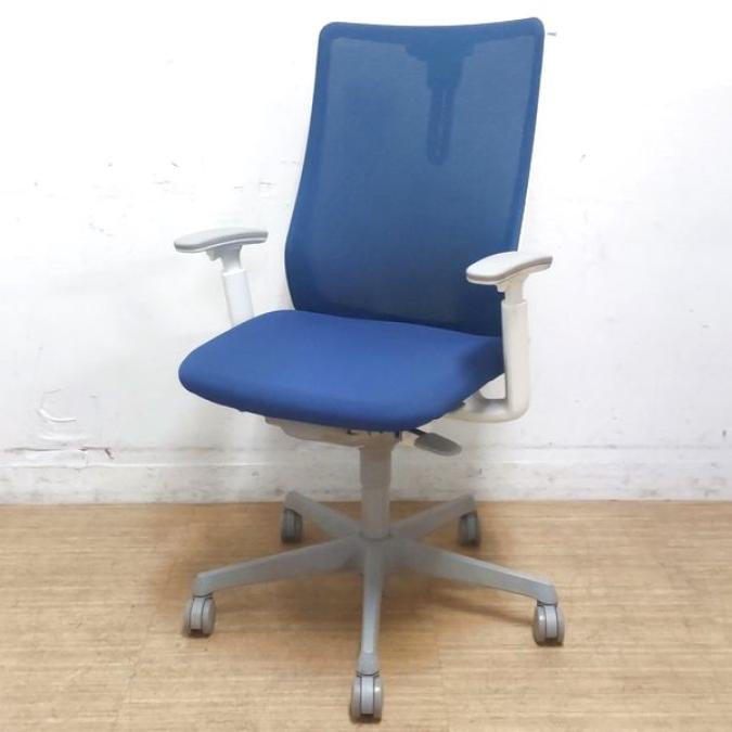 2018年製 オカムラ フルーエンント ハイバック メッシュ アジャストアーム ホワイトフレーム×ミディアムブルー- 名古屋千種店