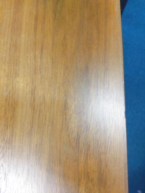 - あり黄ばみ・変色が広い範囲にうっすらある、または濃い黄ばみ・変色が一部ある。(例、天板、幕板、棚板、サイド部分、脚部等にある。)