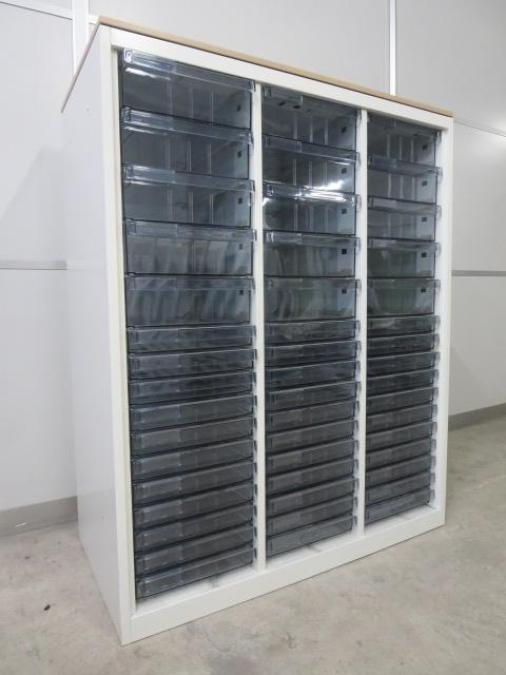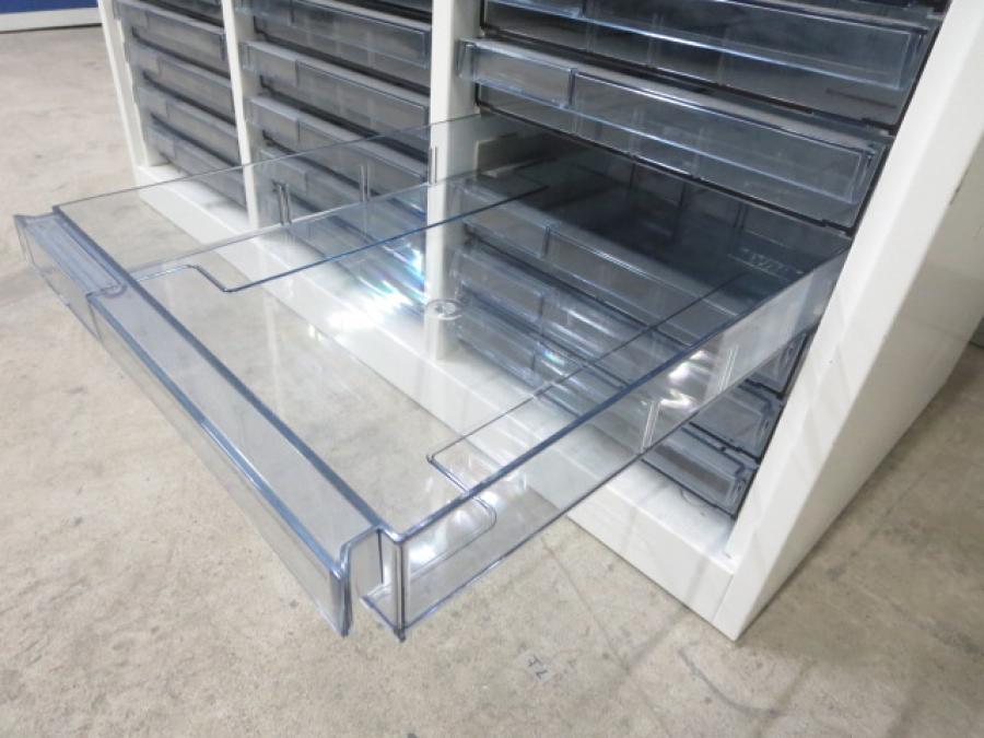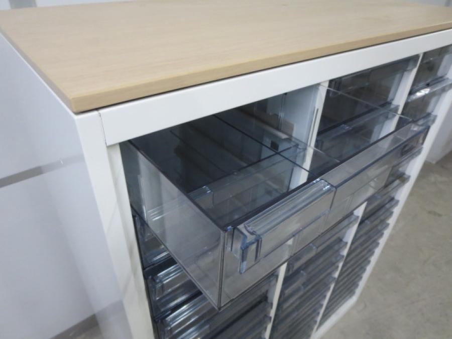 【書類・備品整理の必需品!書類や備品のストックにピッタリ!※1段目のみ浅型仕様】オカムラ レクトライン クリスタルトレー 書類 引き出し 透明 ケース ローキャビネット 整理 中古家具 オフィス家具 福岡 九州最大級《オフィスバスターズ福岡博多店は、福岡を拠点として、日本全国へ中古オフィス用品・オフィス家具を提供しております》