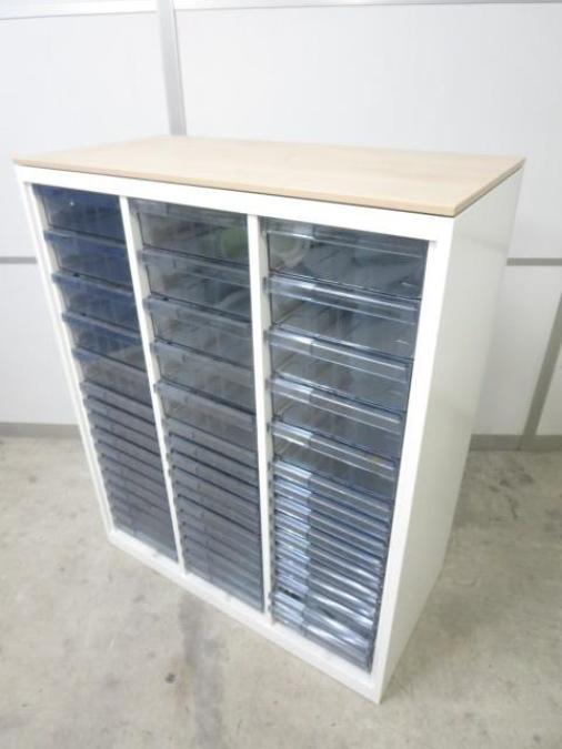 【書類・備品管理のエキスパート!】■オカムラ クリスタルトレイキャビネット A4コンビトレー3列・深型5段・浅型11段 ナチュラル木目天板付- 川崎店