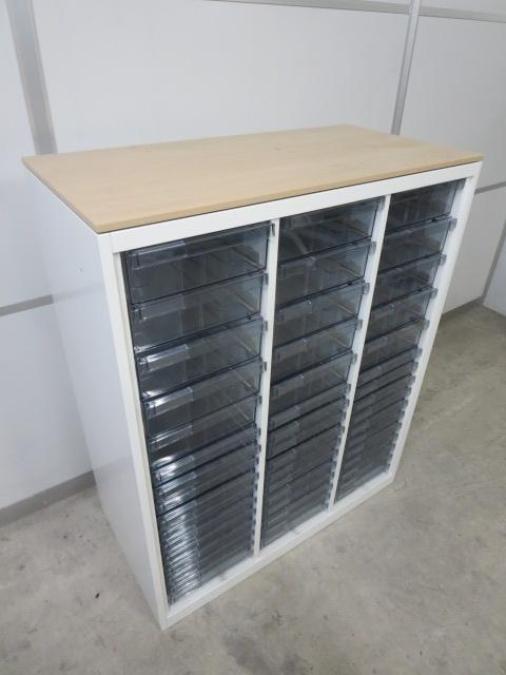 A4用紙サイズのトレーが3列・16段(浅型11段/深型5段)あり、