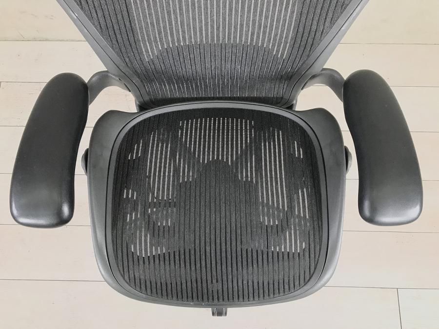 【座 上下昇降 ガス圧不良につき特価!】【オフィスチェアの最高峰!圧倒的人気、知名度を誇るオフィスチェア!肘付ハイバックチェア入荷!】 ■ハーマンミラー(HermanMiller) アーロンチェア 肘付ハイバック ■固定肘 ■背面・座メッシュ ■ブラック ■スタンダード仕様 ■Bタイプ 【上下昇降不可商品につき、中古保証対象外商品となります。】