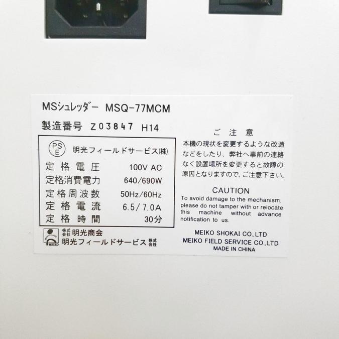 【1台入荷】明光商会のシュレッダー入荷!中古 シュレッダー OA セキュリティ 個人情報 オフィス家具 MSQ-77MCM- 神戸・三宮店