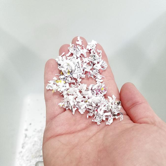 細断くずはミリ単位でチップ状に細断され、収容能力を高めます。