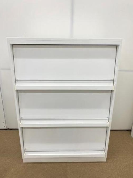【中古品では珍しい!コクヨ製・3段雑誌架タイプ!】【雑誌・パンフレッド等々、扉を開けると収納でき、オフィスの雰囲気を変えたい方におすすめ!!】■コクヨ(KOKUYO) エディアシリーズ 雑誌架 3段 ローキャビネット ■本体ホワイト【2506】弊社使用欄【A01018642】