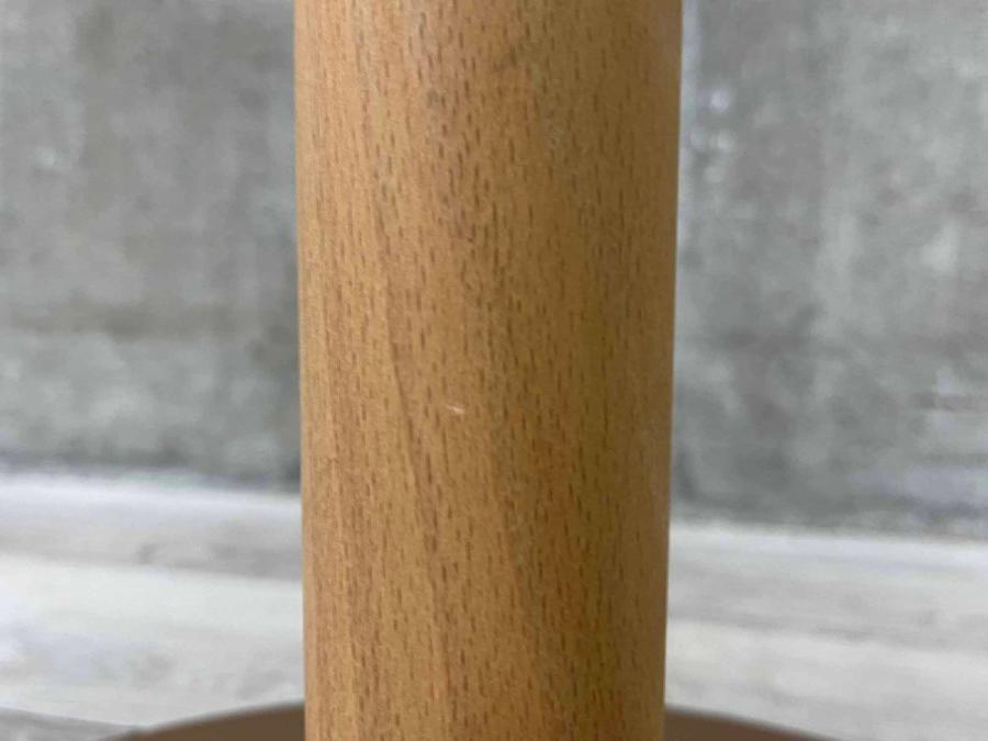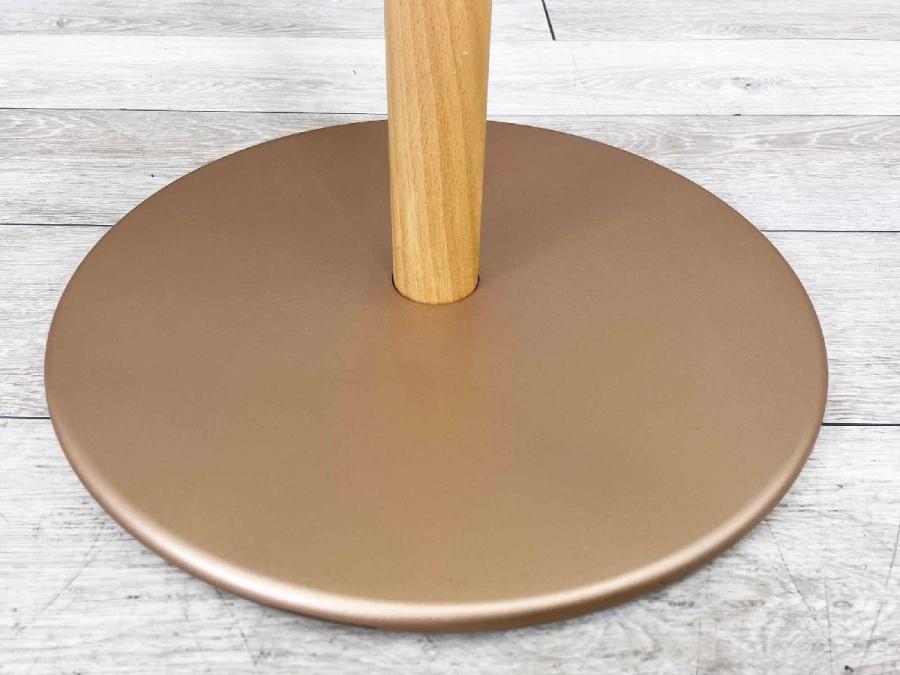 丸いテーブルトップとベースプレートは漆塗りのMDF製で、脚はブナ材でベニヤ加工されております。