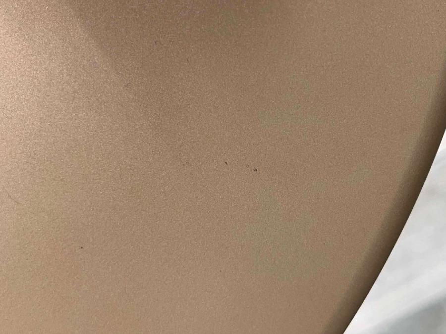 - あり黄ばみ・変色が広い範囲にうっすらある、または濃い黄ばみ・変色が一部ある。(例、天板、幕板、棚板、サイド部分、脚部等にある。)