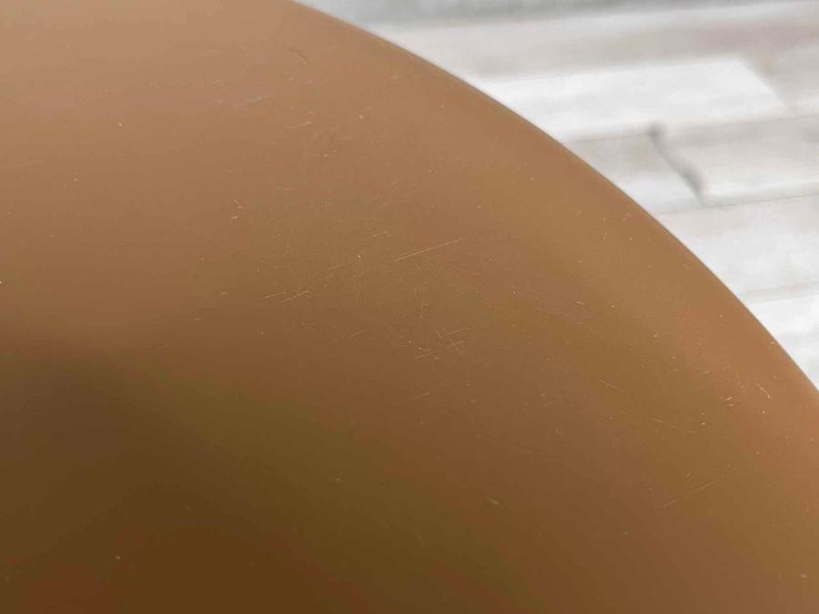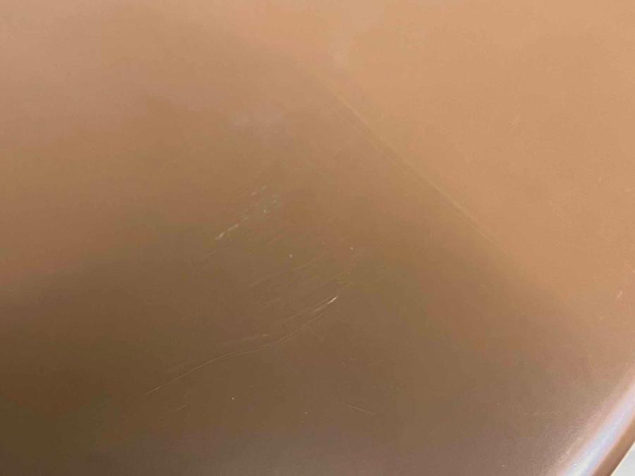 - あり黄ばみ・変色が広い範囲にうっすらある、または濃い黄ばみ・変色が一部ある。(例、天板、幕板、棚板、サイド部分、脚部等にある。)