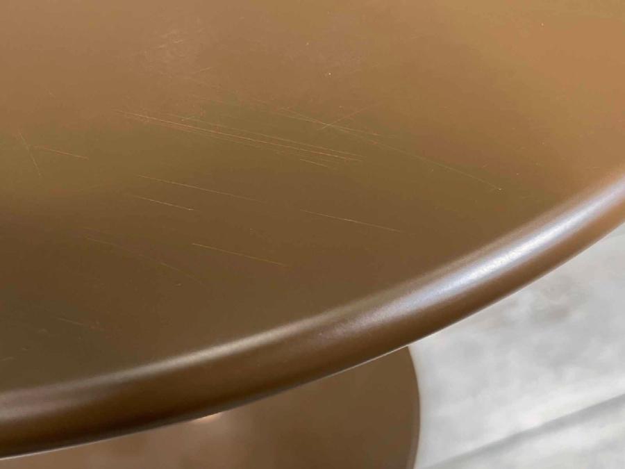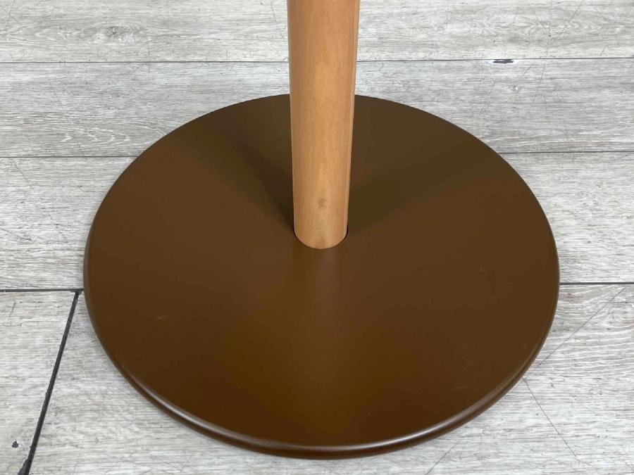 丸いテーブルトップとベースプレートは漆塗りのMDF製で、脚はブナ材でベニヤ加工されております。