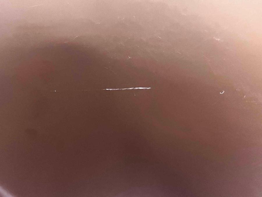 - かなり強い濃い黄ばみ・変色が商品全体にある。(例、天板、幕板、棚板、サイド部分、脚部等にある。)
