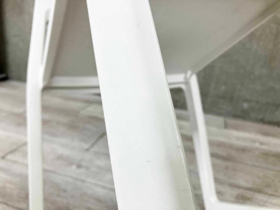 - かなり強い濃い黄ばみ・変色が商品全体にある。(例、座面・背もたれ、脚部等にある。)