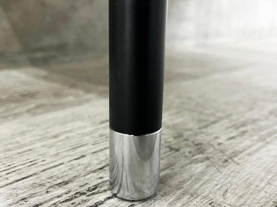 クッション部は適度な堅さを保ち、座り心地を重視しました。<BR>クロムメッキで仕上げられた脚端のアジャスターもシャープなイメージを高めています。