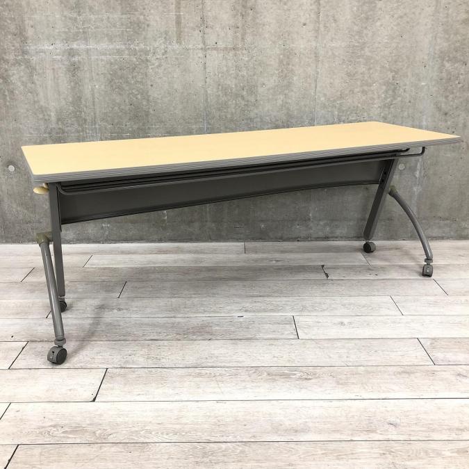 【2~3名様で使えるスタックテーブル入荷!キャスター付きで移動も楽々!】■ITOKI(イトーキ)製 サイドスタックテーブル ■幅1800×奥行600 ■幕板付き ■ナチュラル天板【天板跳ね上げ式でコンパクトに収納】- 神戸・三宮店