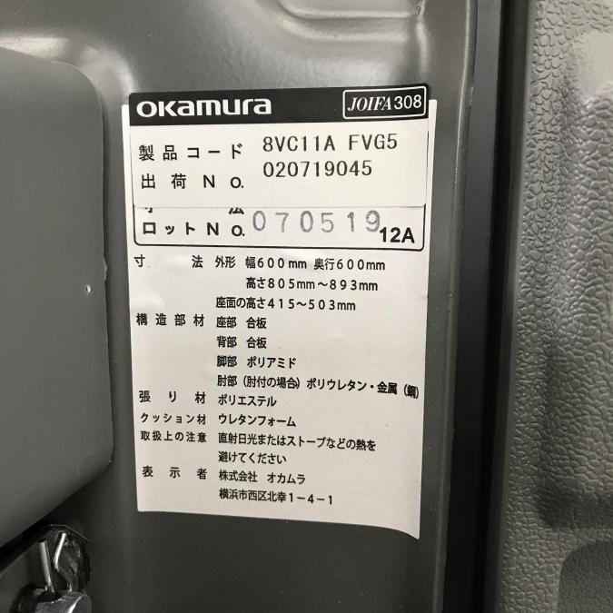 【中古】 ヴィラージュチェア オカムラ/okamura 肘無ローバックチェア 458610