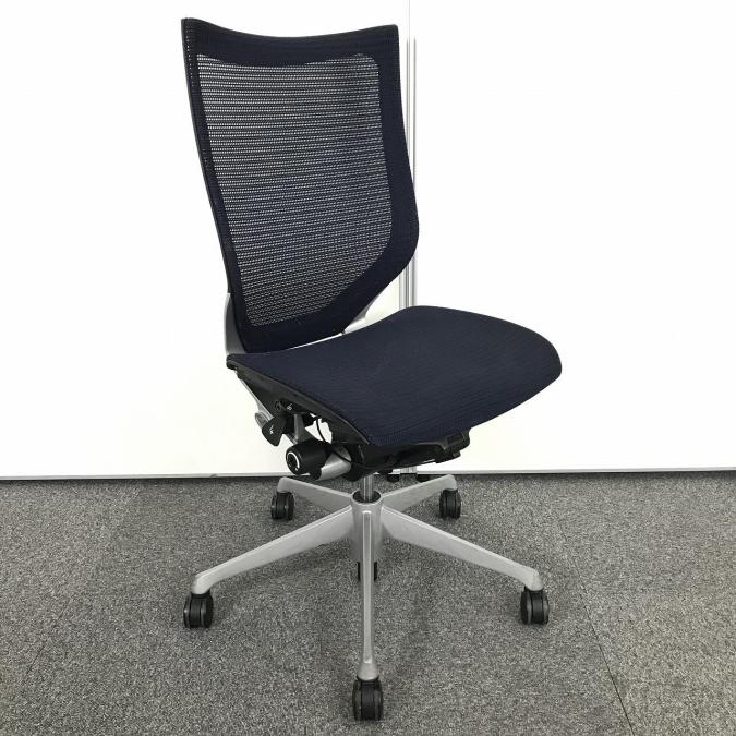 【在庫入替セール!(本商品限定価格)】【オールメッシュの人気チェア!】◆オカムラ/バロンメッシュ/ネイビー ◆ハイバック/肘無し/シルバー脚 【弊社使用欄:A00954910】- 日本橋店