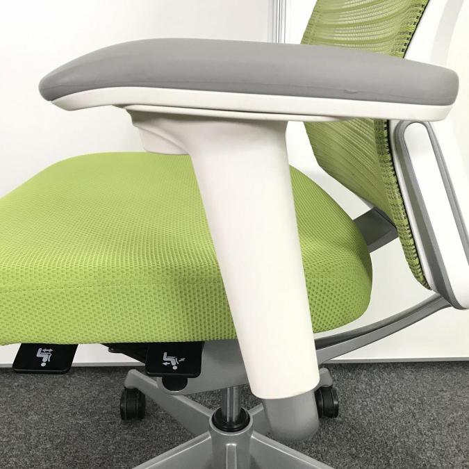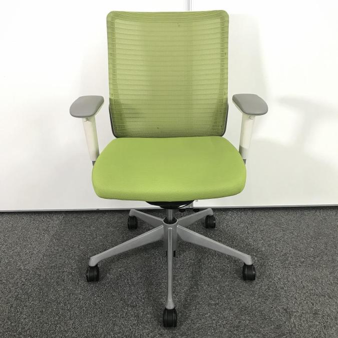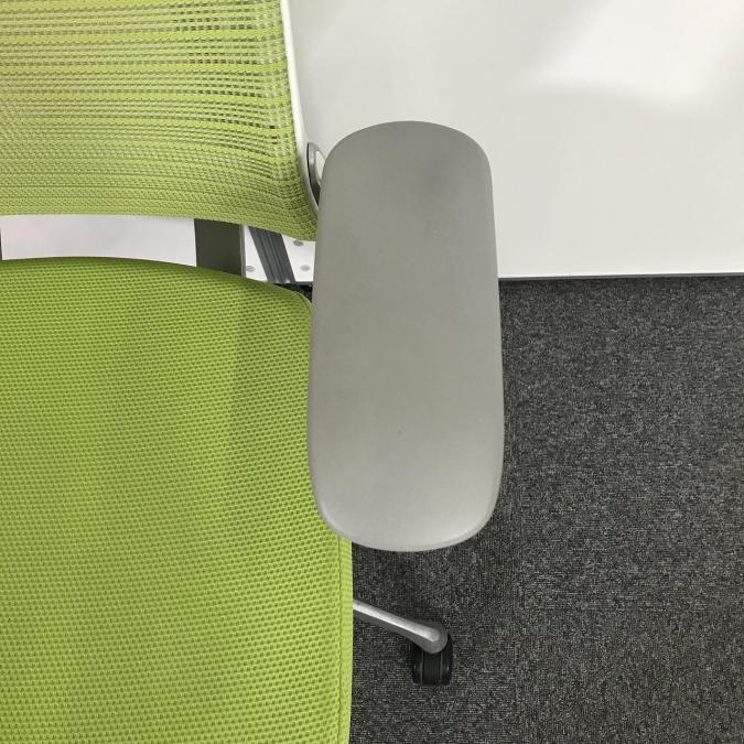 【グリーンさわやか!】◆オカムラ/コーラルメッシュ/グリーン ◆ミドルバック/肘付き(可動肘)/シルバー脚 【弊社使用欄:A00953957】サーキュラーバリューCO2削減量の算出について