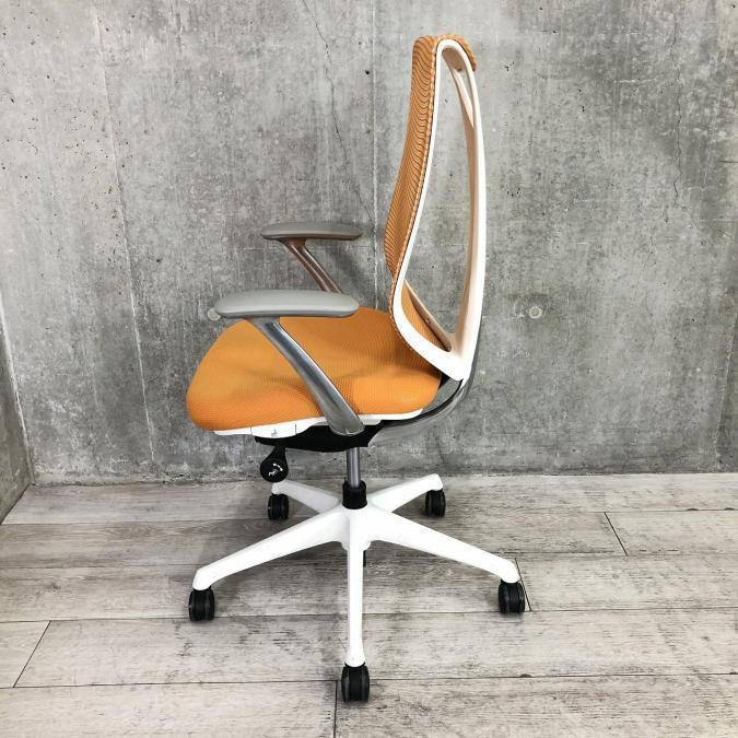 【大人気チェアが大量入荷!!】■オカムラ(okamura)製 Sabrina(サブリナ) メッシュ ハイバック ■固定肘付き ■オレンジ×ホワイトフレーム【ご自宅用にもオススメ!】【華やかなアクセントカラー!女性の多いオフィスに】【入替セール品】- つくば店