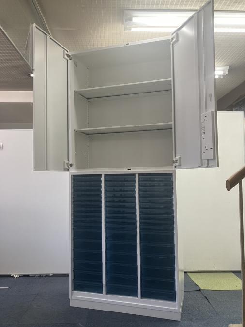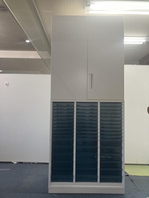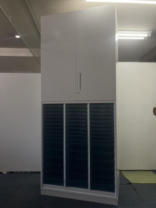 【両開き書庫とクリスタルトレイキャビネットの上下書庫セットの入荷です】 ■コクヨ/エディア/ホワイト 両開き+クリスタルトレー 深型3列11段 計33段