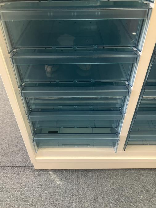 - 一部不具合ありそ引出の開閉不可、施錠不可、棚板無しといったの書庫の本来の効用を果たすための機能以外の一部が使用不可(例、扉、引出の開閉がしづらいなどがある。 )