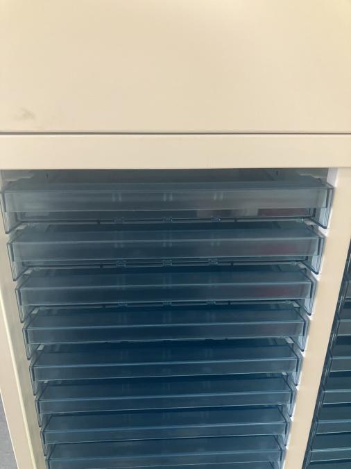 - 多数不具合あり引出の開閉不可、施錠不可、棚板無しといったその書庫の本来の効用を果たすための機能以外の多数が使用不可(例、扉、引出の開閉がしづらいなどがある。 )