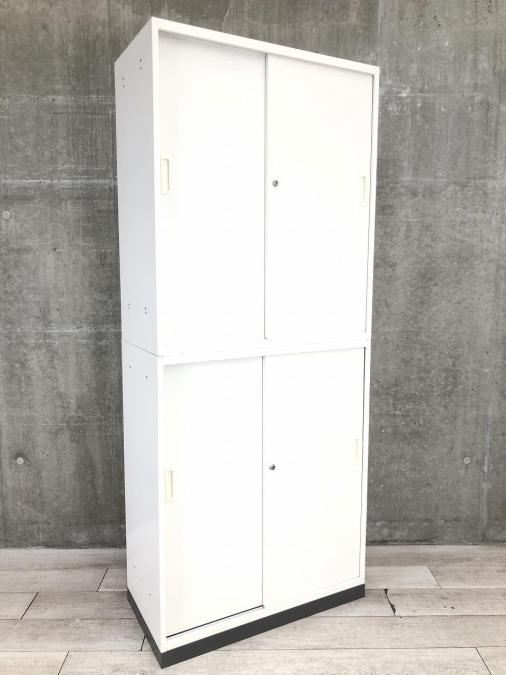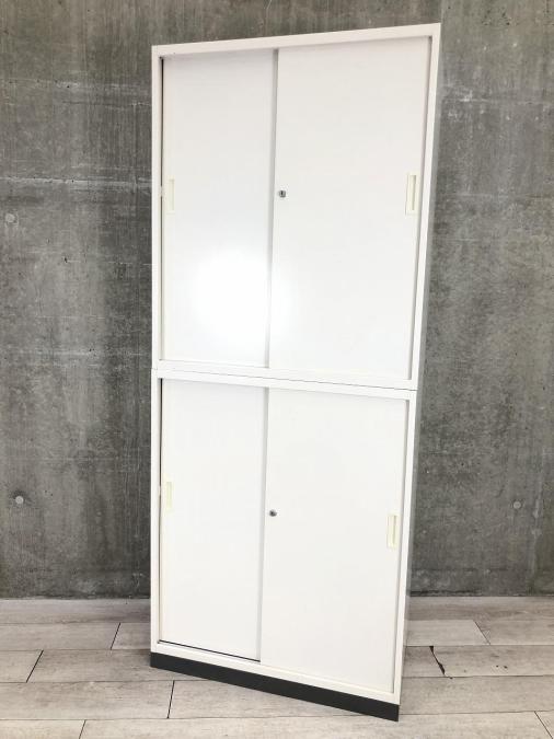 大容量!人気シリーズの上下書庫セット!オフィス書類を一気に整理【搬入時は上下別の2個口での納品となるためエレベーター搬入も安心!】 [生興製 引き違い+引き違い 書庫セット ホワイト]- 足立・葛飾店