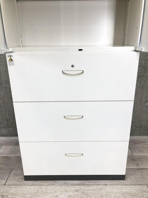 【両開き+3段引き出しの定番書庫セットが入荷!】【ベース色ブラック】■生興製 クウォール RW 両開き戸+3段ラテラル 書庫セット ホワイト【オフィス書類を一気に整理!】※奥行400- 足立・葛飾店