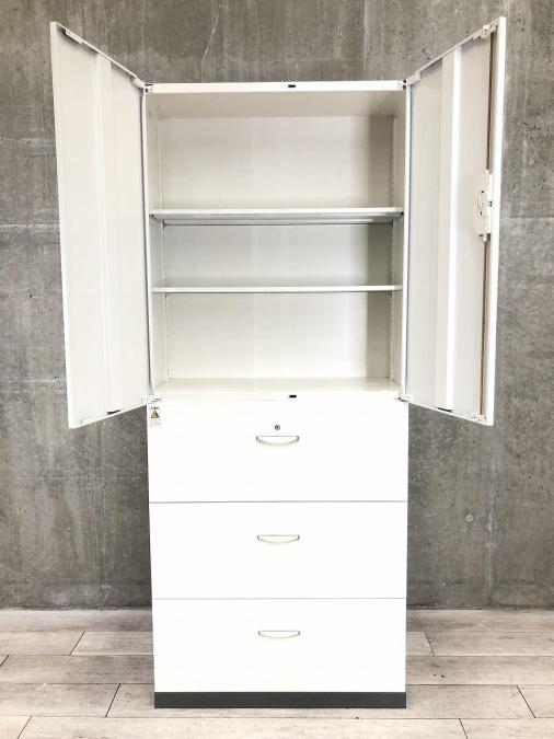 【中古】 QUWALL RW4-310D,RW4-10H 生興 ハイキャビネット/両開き+3段ラテラル 458771