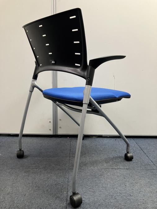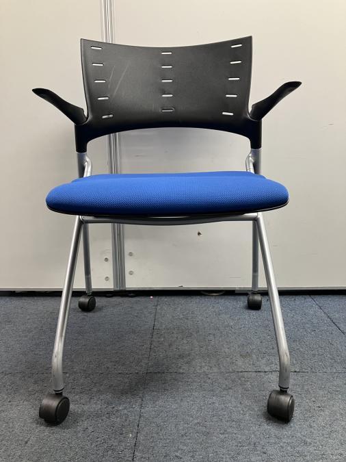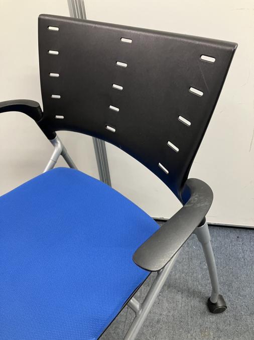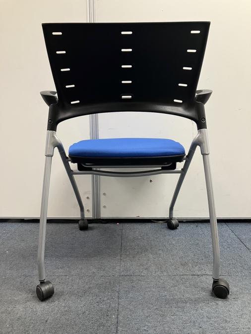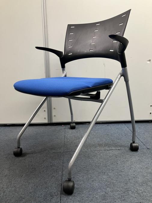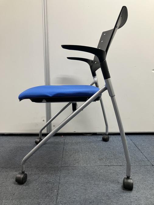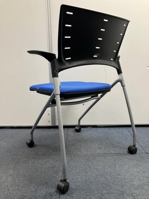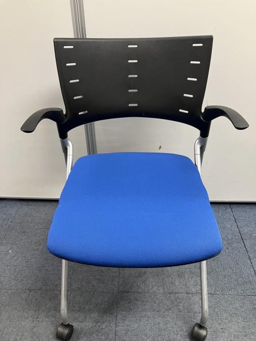 【在庫入替】【ロットで入荷!】空間を有効活用! ■イトーキ マノス ネスティングチェア ブルー 肘付き- 名古屋本店
