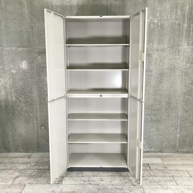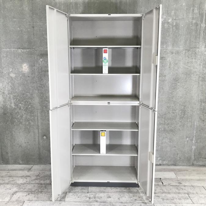 両開き書庫は、扉を開けると内容物が一目瞭然なのが特徴です。