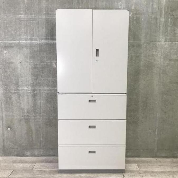 【倉庫在庫品】【これ1台で書類整理の問題が解決!上下で6段分の大容量収納!】■イトーキ (ITOKI)製 シンライン ハイキャビネット 両開き+3段ラテラル 書庫セット ■グレー ■シリンダー錠