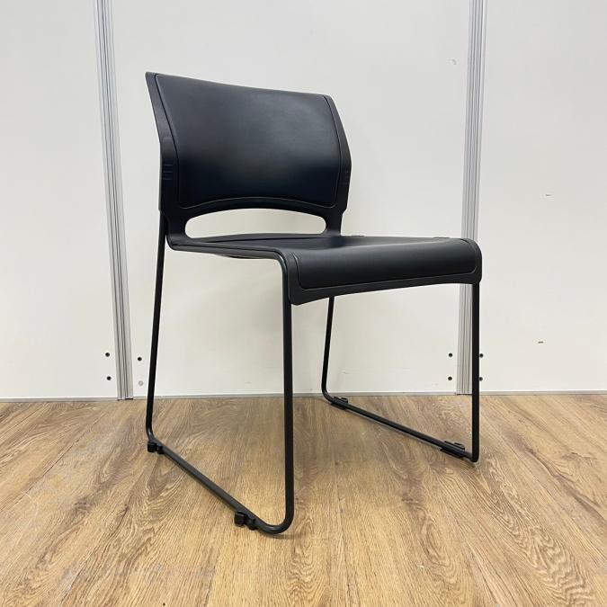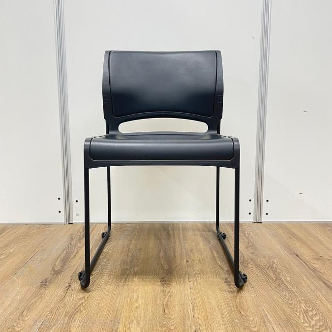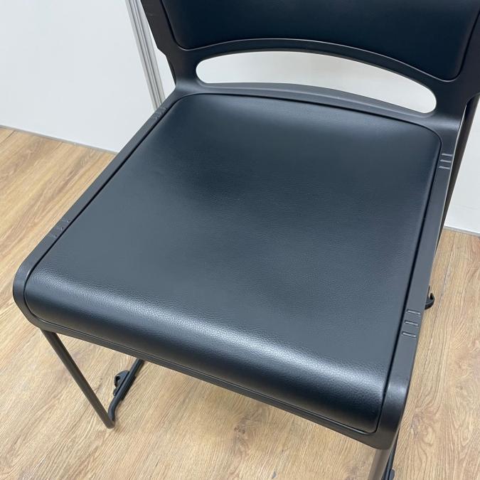 【商品入替のため、残り2脚限り】オカムラ製 リットシリーズ ブラック 収納楽々な積み重ね ビニールレザータイプ スタッキングチェア!!- 京都東寺店