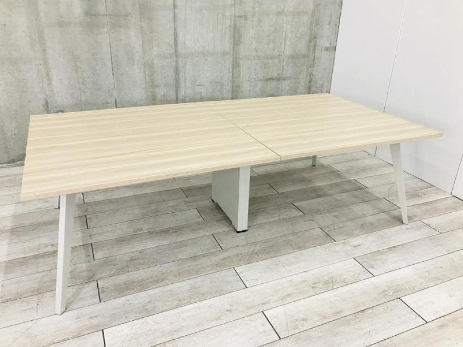 【在庫入れ替え】【2台入荷】今はやりのナチュラル天板が入荷!ミーティングテーブル W2400 4本脚 オシャレ 会議- 豊中・尼崎店