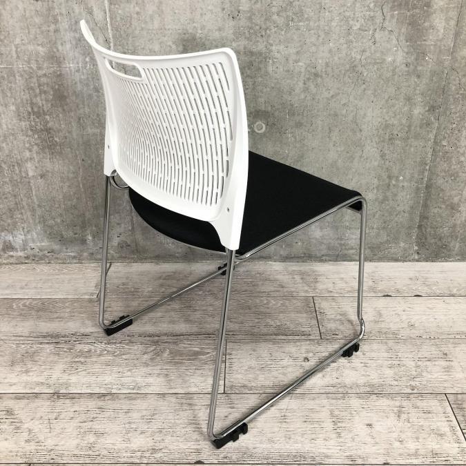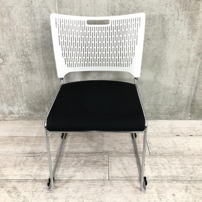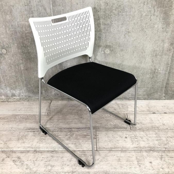 【定価約3万円】シンプルなデザインで使いやすい!重ねて収納可能なスタッキングチェア!会議室、共有スペースなどに!■オカムラ製 レーテ スタッキングチェア ミーティングチェア ■ブラック×ホワイト 【入れ替えセール品】- つくば店