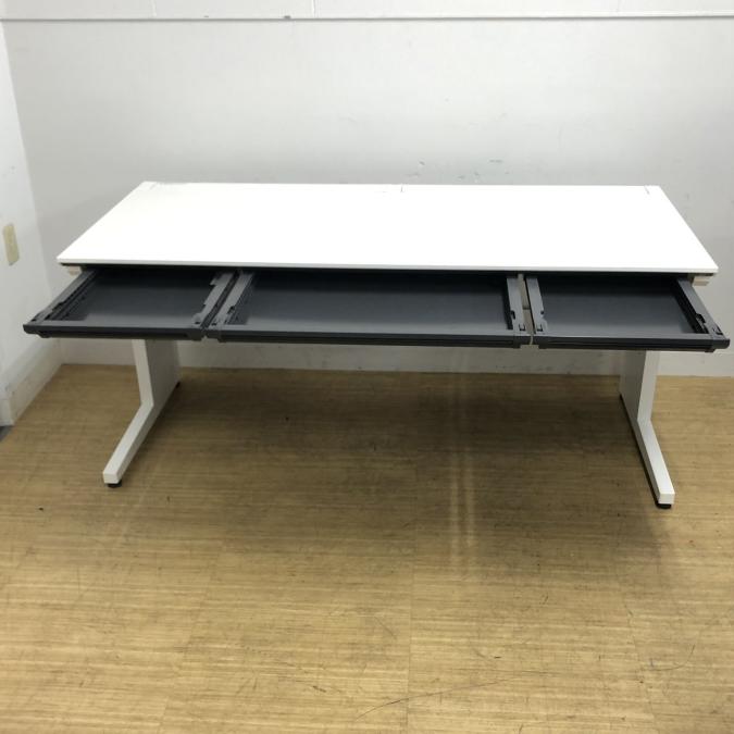 幅1600mmの大き目サイズ センター引き出し付 スタンダードテーブル コクヨ iS 脚に日焼け有在庫がある店舗一覧