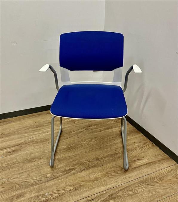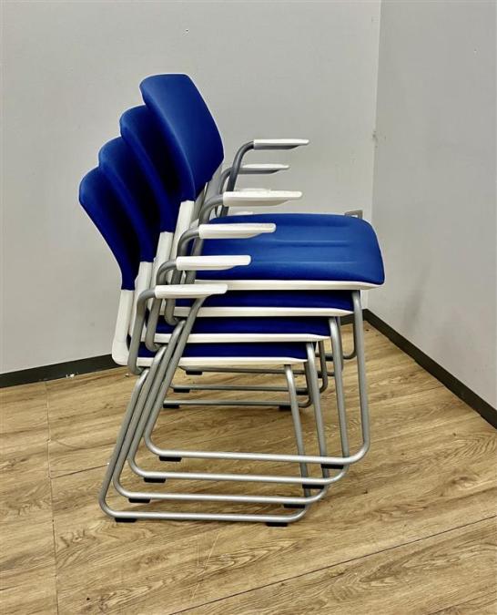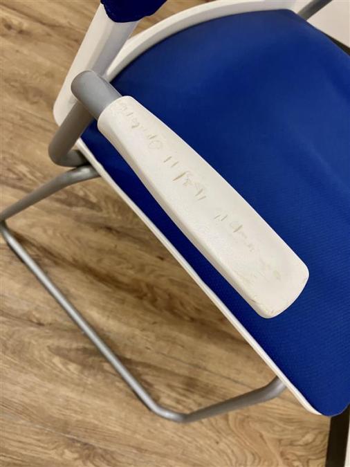 【便利な肘付きスタッキングチェア!】コクヨ製(kokuyo) スタッキングチェア CK-160シリーズ カラー:ブルー ※肘に傷があります。(写真9枚目をご確認ください)- つくば店