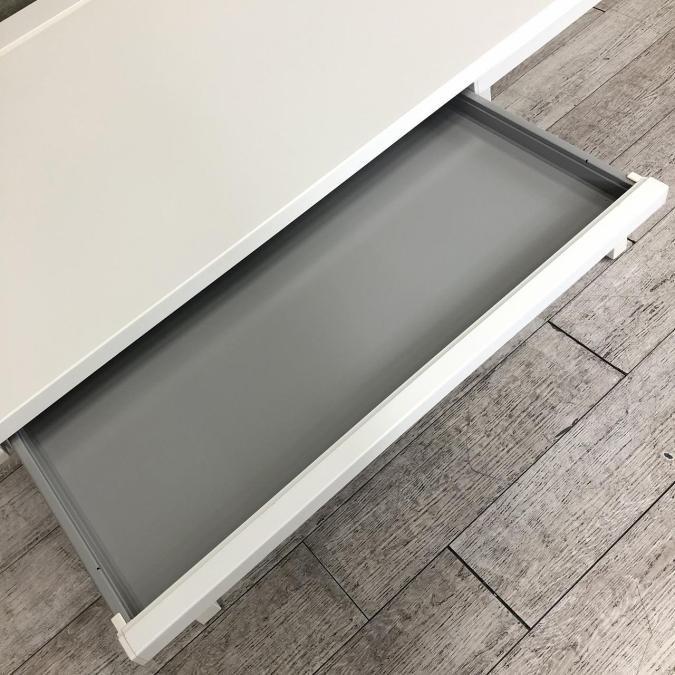 【幅1100でコンパクト!人気の清潔感あるホワイトカラー!】■ウチダ(UCHIDA) スカエナシリーズ 平机 引き出し付 W1100×D700mm ■ホワイト ■配線Kタイプ