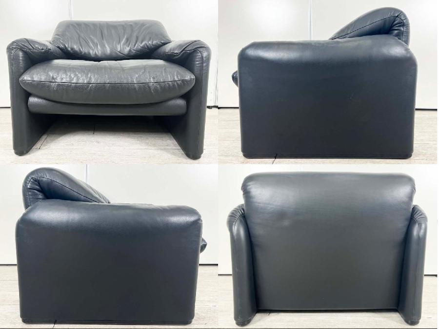 B)Cassina/カッシーナ マラルンガ 一人掛けソファ 本革 ブラック ヴィコ マジストレッティ- デザイナーズ家具センター