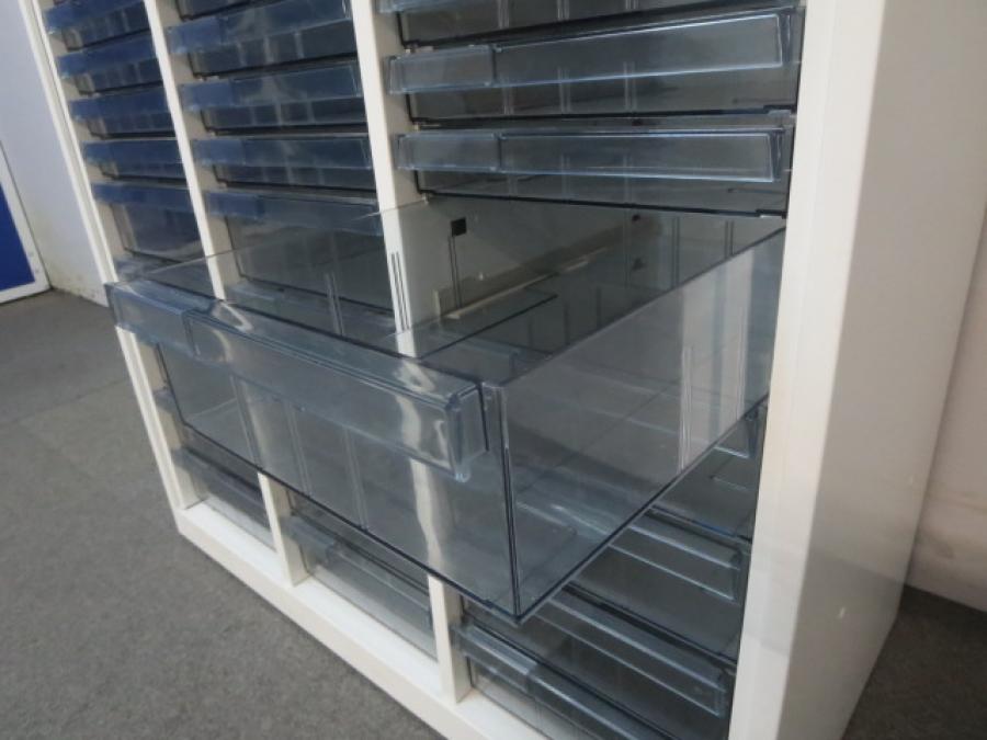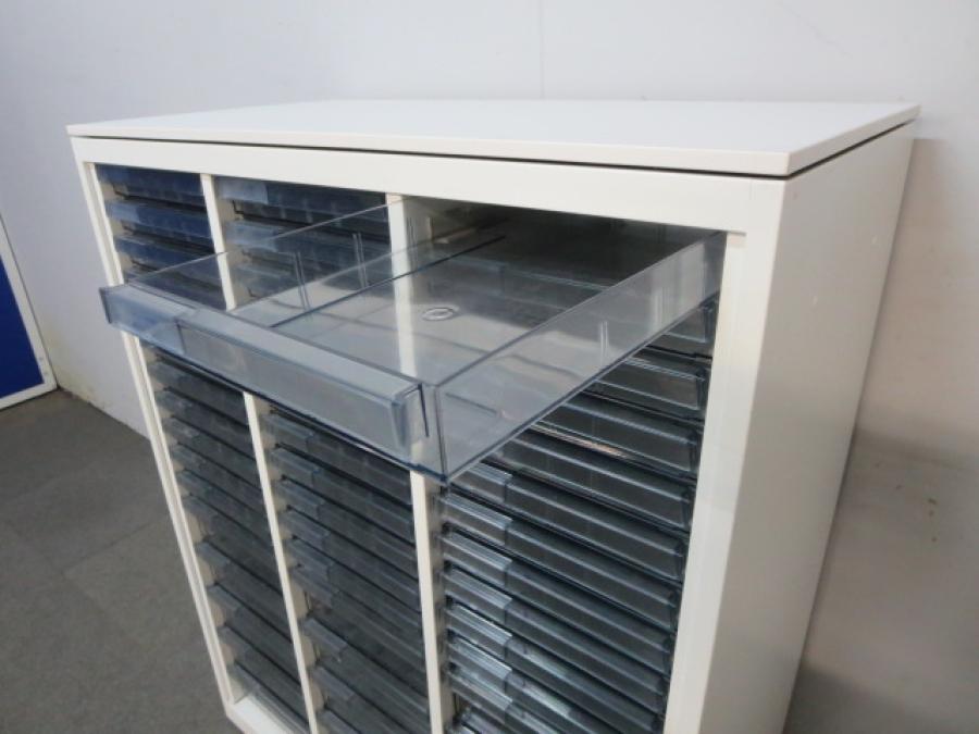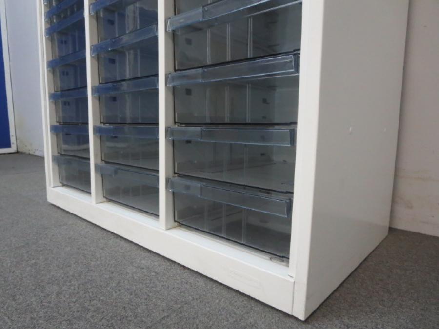 【書類・備品整理の必需品!書類や備品のストックにピッタリ!※1段目のみ浅型仕様】オカムラ レクトライン クリスタルトレー 書類 引き出し 透明 ケース ローキャビネット 整理 中古家具 オフィス家具 福岡 九州最大級《オフィスバスターズ福岡博多店は、福岡を拠点として、日本全国へ中古オフィス用品・オフィス家具を提供しております》