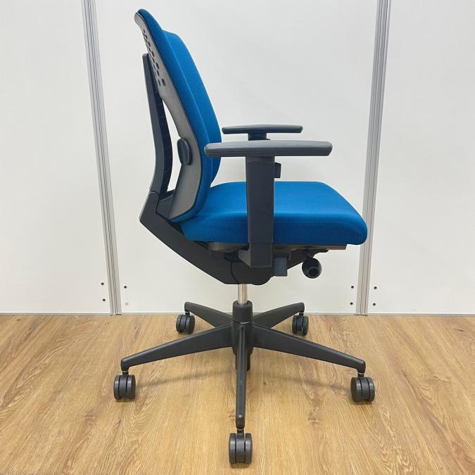 ■コクヨ(KOKUYO)製 ■ウィザード2(wizard2)チェア ■プルシアンブルー×ホワイトシェル ×ブラック脚 ■肘付ローバック ■固定肘・ランバーサポート付き 【弊社使用欄:A01048229 K】【ID】