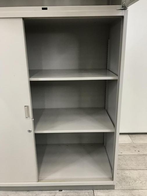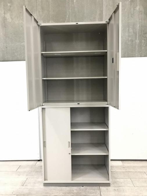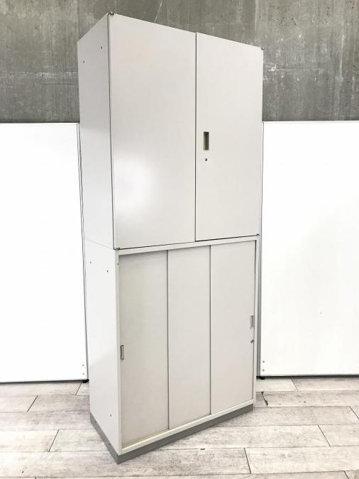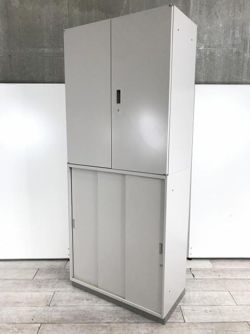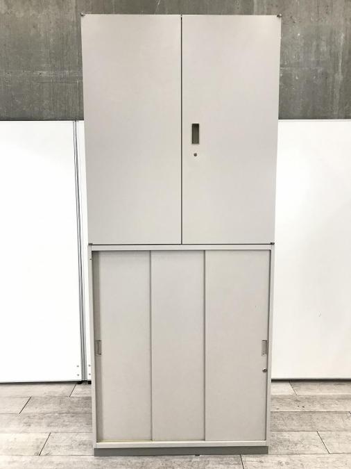 【在庫入替セール品!】大容量!人気シリーズの上下書庫セット!オフィス書類を一気に整理【搬入時は上下別の2個口での納品となるためエレベーター搬入も安心!】 [イトーキ製(ITOKI) シンラインシリーズ 両開き戸+3枚引き戸 書庫セット グレー]【弊社使用欄:A00943344】- 在庫数