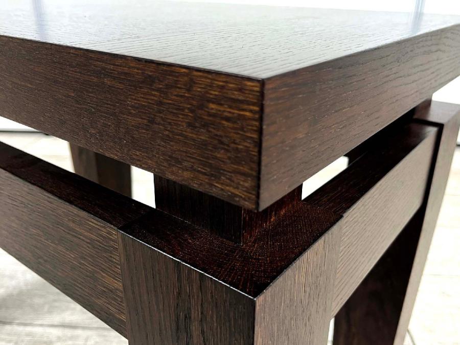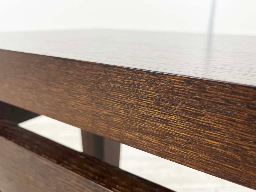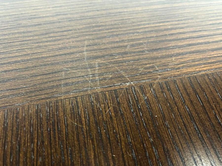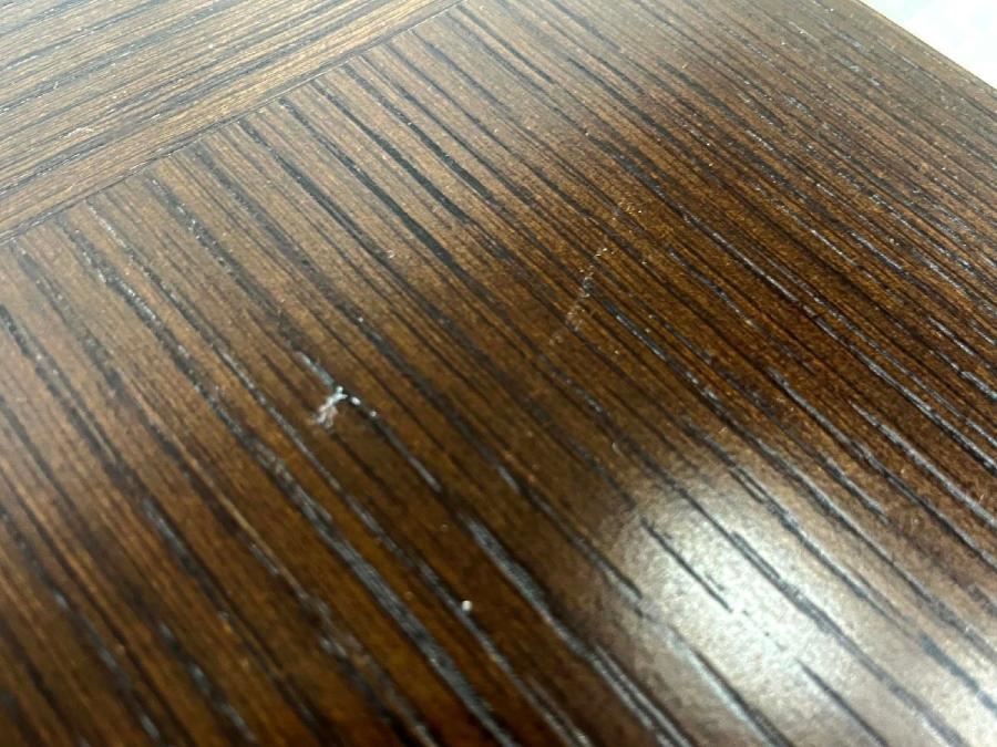 - 目立つ箇所あり傷・凹みが多数、深い傷・凹みが一部ある。(例、天板、幕板、棚板、サイド部分、脚部等にある。)