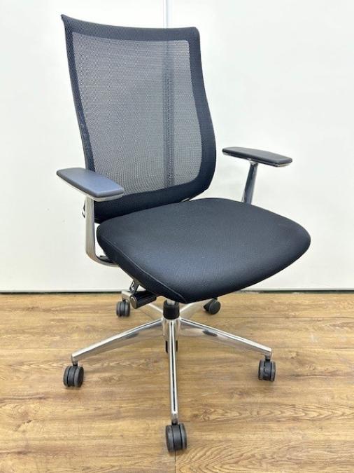 【在庫入替セール品!】前傾機能付き高級チェア!重厚感のあるブラック×ポリッシュ仕様 応接室や会議用にもおすすめ! ■コクヨ/ベゼル/ブラック テクスチャードメッシュ