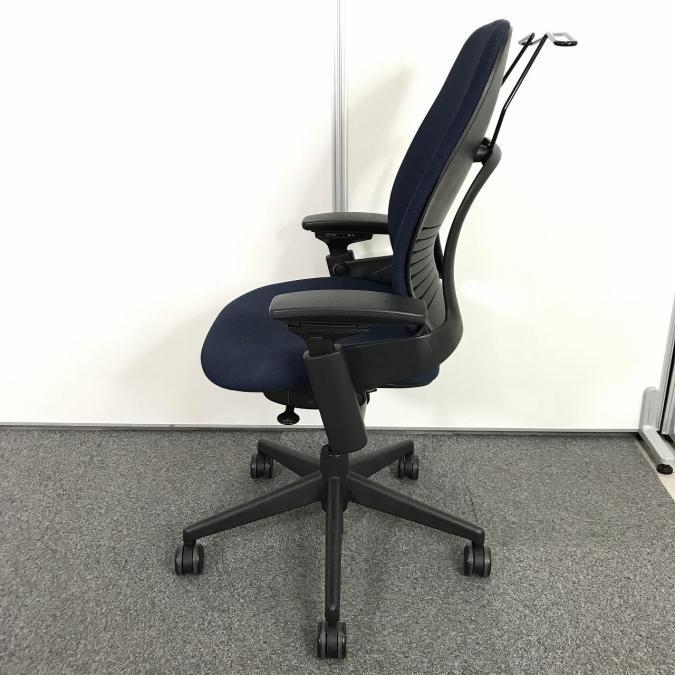 【在庫入替えセール!】【エルゴノミクスの視点から誕生!】■スチールケース製 リープチェア 可動肘 ダークブルー ジャケットハンガー付- 足立・葛飾店