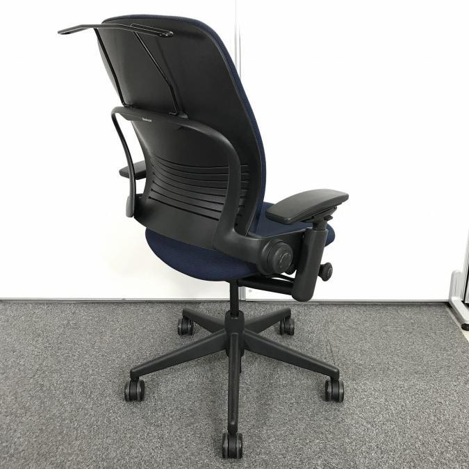 大人気シリーズ スチールケース/Steelcase リープV2/Leap V2 ネイビーブルー×ブラックフレーム 可動肘 ハンガー付き