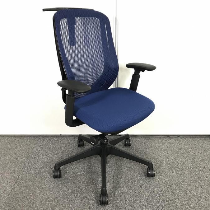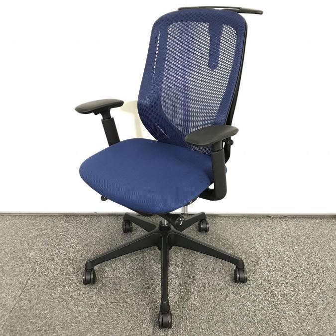 【新品ヘッドレスト交換済み】オカムラ/シルフィー/ブルー/可動肘