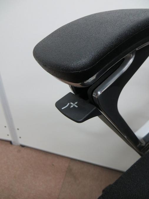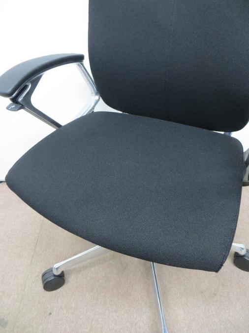 ※ひじ掛け部分に使用感ありのため、特価!【オカムラの最上級モデル!高級感と機能性を融合させたチェア!】■ハイバック 肘付き 背・座クロス張地(スエード調) 固定肘 ※サイド剥がれ有り ランバーサポート付き ブラック/オカムラ/デューク